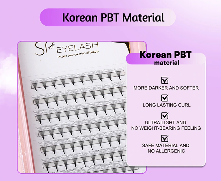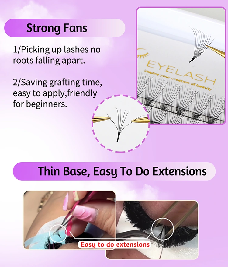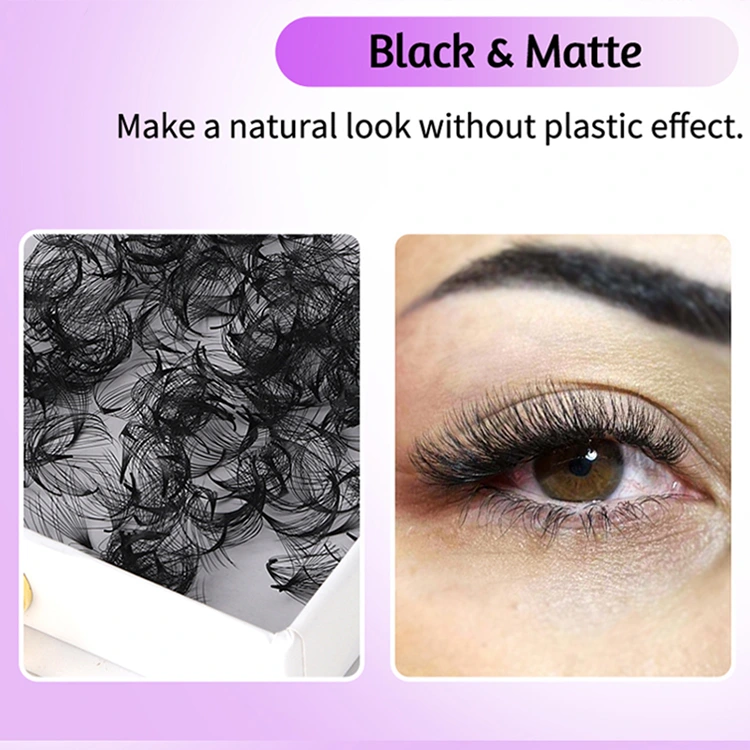 ປະລິມານ Mega-fluffy ແລະ Glamorous: fans handmade handmade lash ແມ່ນເຮັດດ້ວຍວັດສະດຸ PBT ສີດໍາ, ເຊິ່ງນໍາເອົາຜົນກະທົບທີ່ມີຄວາມຄ່ອງແຄ້ວແລະມີຄວາມໂດດເດັ່ນກວ່າ. ຂົນຕາປອມເຫຼົ່ານີ້ສາມາດເຮັດໃຫ້ຕາໂດດເດັ່ນແລະເຫມາະສົມກັບການສ້າງຮູບລັກສະນະທີ່ຈັບຕາ. ຜົນກະທົບສີດໍາທີ່ອ່ອນໂຍນເພີ່ມຄວາມຮູ້ສຶກທີ່ຫລູຫລາແລະອາຫານໂປດ, ເຫມາະສໍາລັບໂອກາດໃດໆ