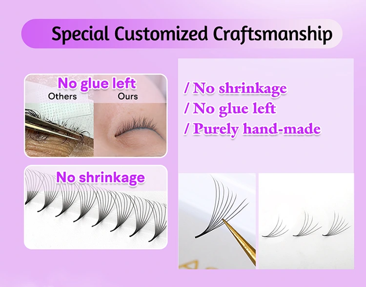 Fans 500 Fans ທີ່ມີຄວາມສະຫຼາດປະສົມຄວາມຍາວປະສົມແລະການໂຄ້ງລົງເພື່ອສ້າງ eyelashes ອ່ອນ, fluffy, ແລະມີນ້ໍາຫນັກເບົາ. ຂົນຕາເຫລົ່ານີ້ມີການນໍາໃຊ້ຫຼາຍແບບຫຼາຍແບບແລະເຫມາະສົມກັບທຸກໆຮູບຊົງແລະຮູບແບບຂອງຕາ. ເປັນທີ່ຮູ້ຈັກສໍາລັບຄຸນນະພາບສູງຂອງມັນ, ຂົນຕາເຫລົ່ານີ້ຖືກຊື້ຈາກຜູ້ສະຫນອງທີ່ມີຄວາມຮັບຜິດຊອບແລະໃຫ້ບໍລິການພາຍຫຼັງການຂາຍທີ່ເຂັ້ມແຂງ, ລວມທັງການປັບແຕ່ງໂລໂກ້ແລະຕົວເລືອກຂາຍສົ່ງ. ຄວາມຍືດຫຍຸ່ນທີ່ດີເລີດຂອງ 500 fans handmade handmade lashes ເຮັດໃຫ້ມີການສະຫມັກທີ່ຫຼາກຫຼາຍ, ຕອບສະຫນອງຄວາມມັກຂອງລູກຄ້າທີ່ແຕກຕ່າງກັນໂດຍການແກ້ໄຂບັນຫາຕ່າງໆໂດຍດ່ວນ.